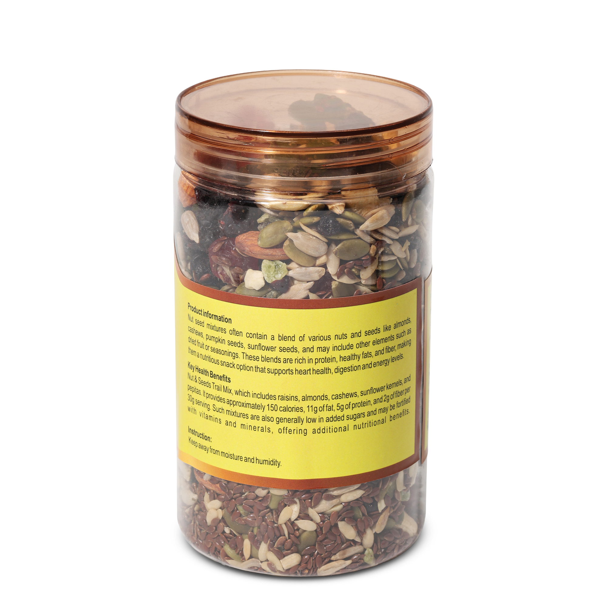 Nut seed mixtures often contain a blend of various nuts and seeds like almonds, cashews, pumpkin seeds, sunflower seeds, and may include other elements such as dried fruit or seasonings. These blends are rich in protein, healthy fats, and fiber, making them a nutritious snack option that supports heart health, digestion, and energy levels.