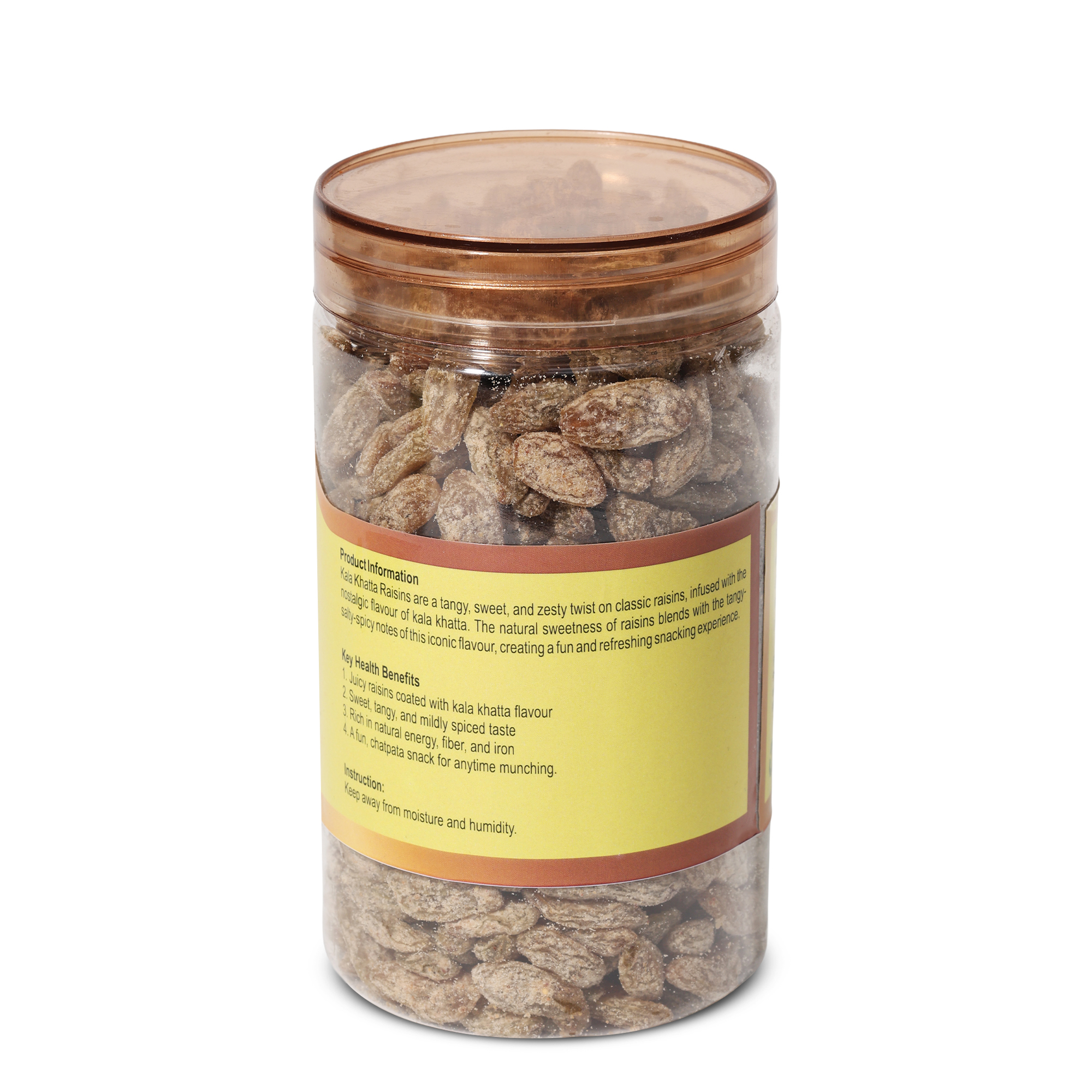 Kala Khatta Raisins are a tangy, sweet, and zesty twist on classic raisins, infused with the nostalgic flavour of kala khatta. The natural sweetness of raisins blends with the tangy-salty-spicy notes of this iconic flavour, creating a fun and refreshing snacking experience.