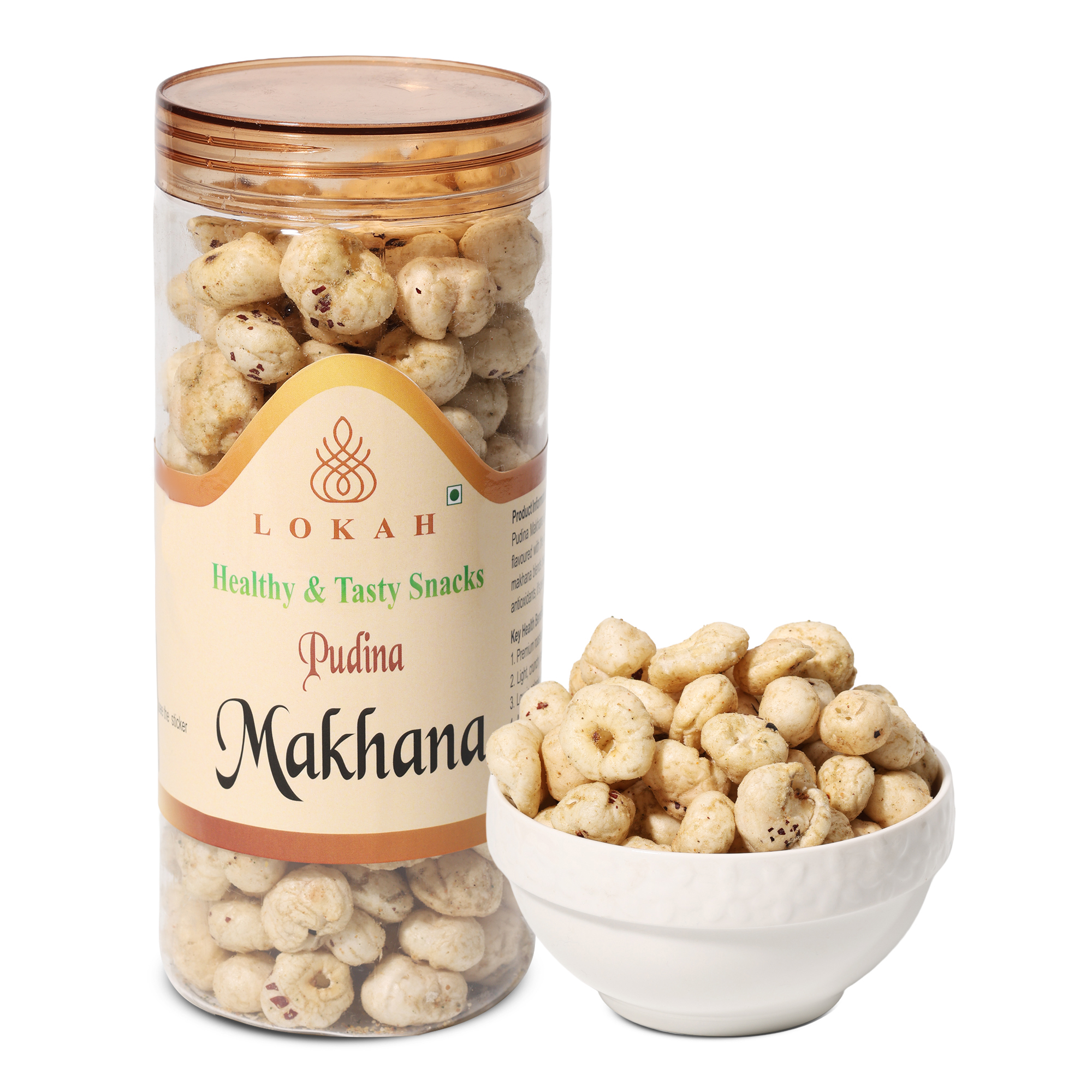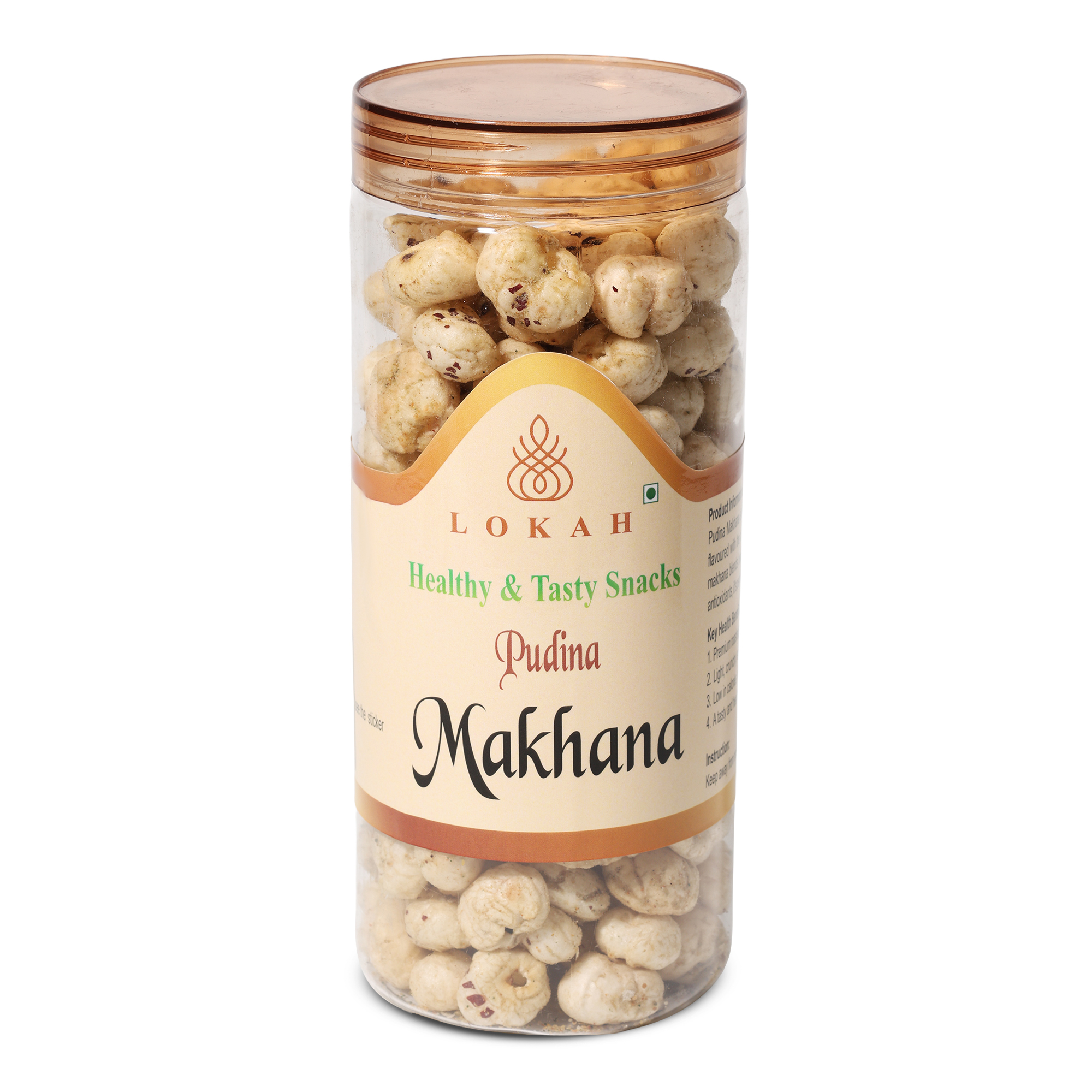 Pudina Makhana is a light, crunchy, and refreshing snack made from roasted fox nuts flavoured with the cool zest of mint (pudina) and a hint of spices. The crisp texture of makhana blends beautifully with the soothing minty taste. Rich in protein, calcium, and antioxidants, it’s perfect for anytime guilt-free munching.